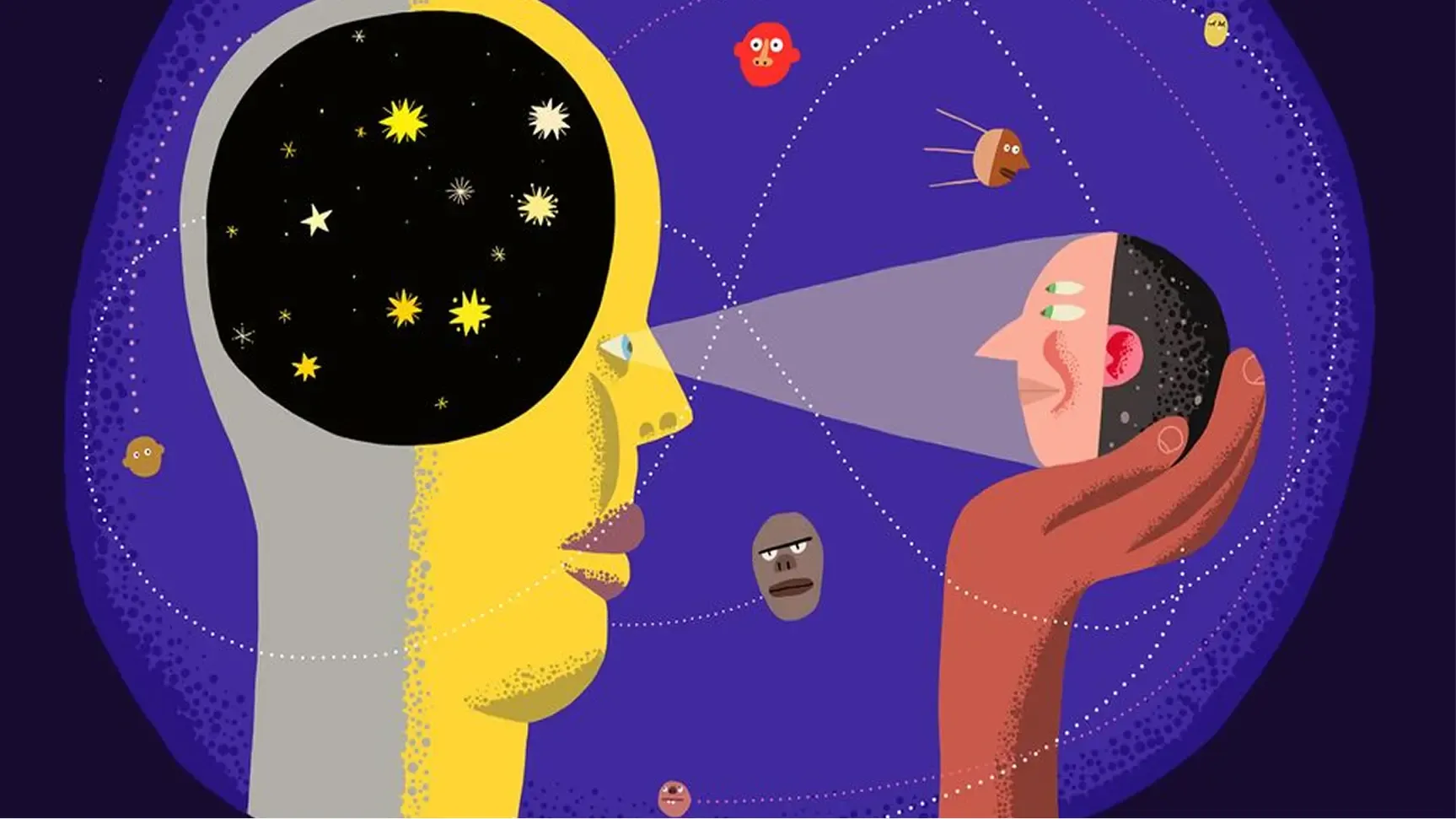 Hlava je jediná planeta s vesmírem uvnitř. Vstupte do prostoru, kde se řeč tváře stává krajinou k objevování sebe i druhých. Kdo jsi, když se koukneš do zrcadla a kdo, když se na tebe dívají ostatní?